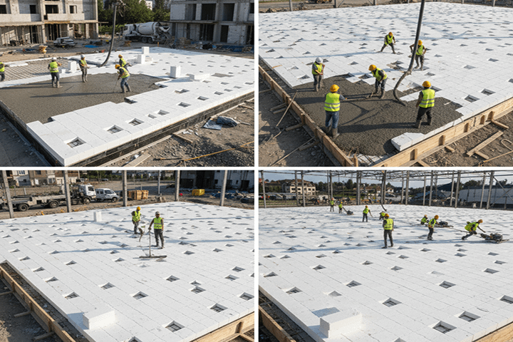 Độ Bền Cơ Học: Xốp EPS có cường độ nén nhất định, nhưng không thể chịu lực tập trung cao như bê tông. Nếu không được tính toán kỹ lưỡng và thi công lớp bảo vệ bề mặt (lớp vữa hoặc bê tông) đúng kỹ thuật, sàn có thể bị lún cục bộ hoặc hư hỏng.